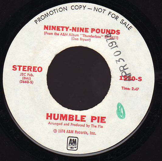 HUMBLE PIE Ninety-Nine Pounds A&M WLP 7" 1530 C/w Same Stereo M-