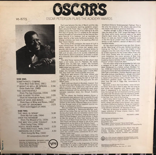 Oscar Peterson Oscar's Oscar Peterson Plays The Academy Awards Verve Records LP MGM-8775